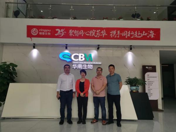 春茂集團羅總、鳳翔集團梁科長、瑞金祥瑞賈總和楊總在華南生物營銷中心總經理徐兆強的陪同下參觀了華南生物展廳,徐總對華南生物的發展歷程和企業文化進行了詳細的講解,對華南生物未來的發展規劃及研發方向與羅總一行進行詳細介紹。