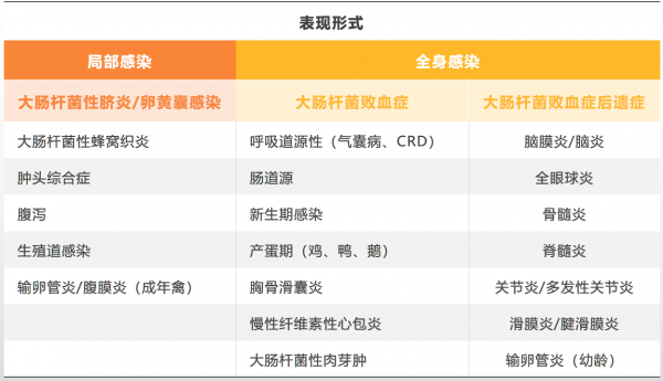 禽大腸桿菌病是指由致病性大腸桿菌所引的局灶性和全身性感染的疾病。該病各種家禽均易感,禽致病性大腸桿菌經常利用由于合并感染和/或過度接觸不良環境條件而受損的宿主防御系統而表現出發病癥狀。例如大腸桿菌敗血癥、大腸桿菌肉芽腫、氣囊炎、肝周炎、心包炎、腫頭綜合癥、蜂窩織炎、輸卵管炎、臍炎、卵黃性腹膜炎、全眼球炎等。總體來說,該病是養禽業最廣泛存在的、多形式的細菌性疾病,造成重大經濟損失。